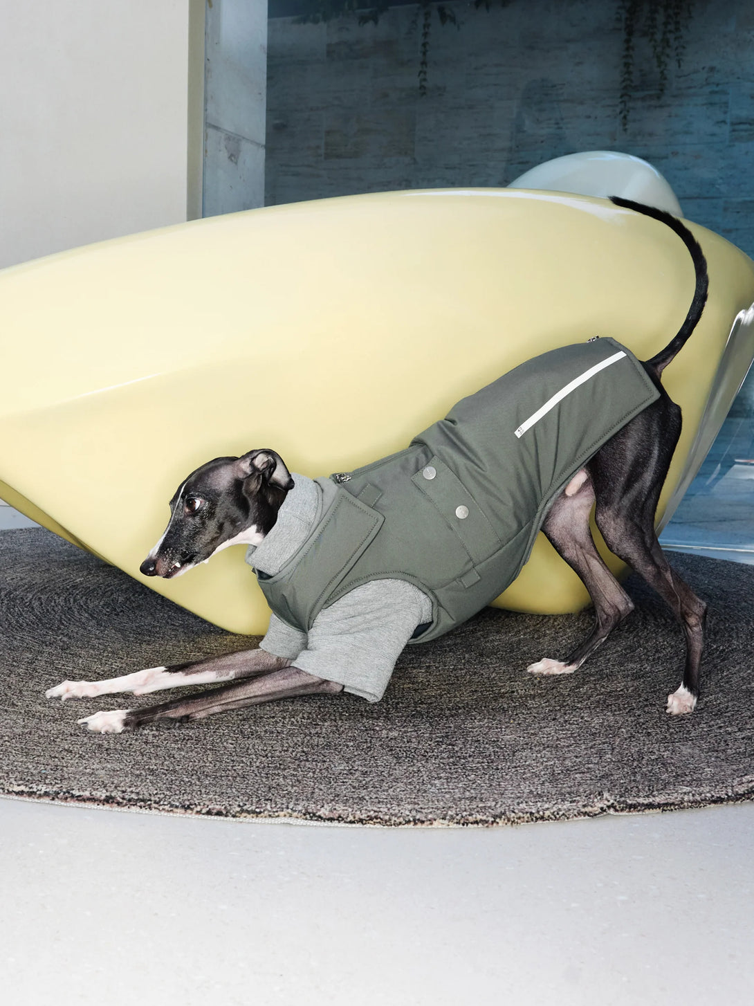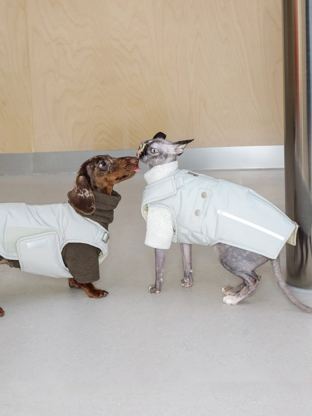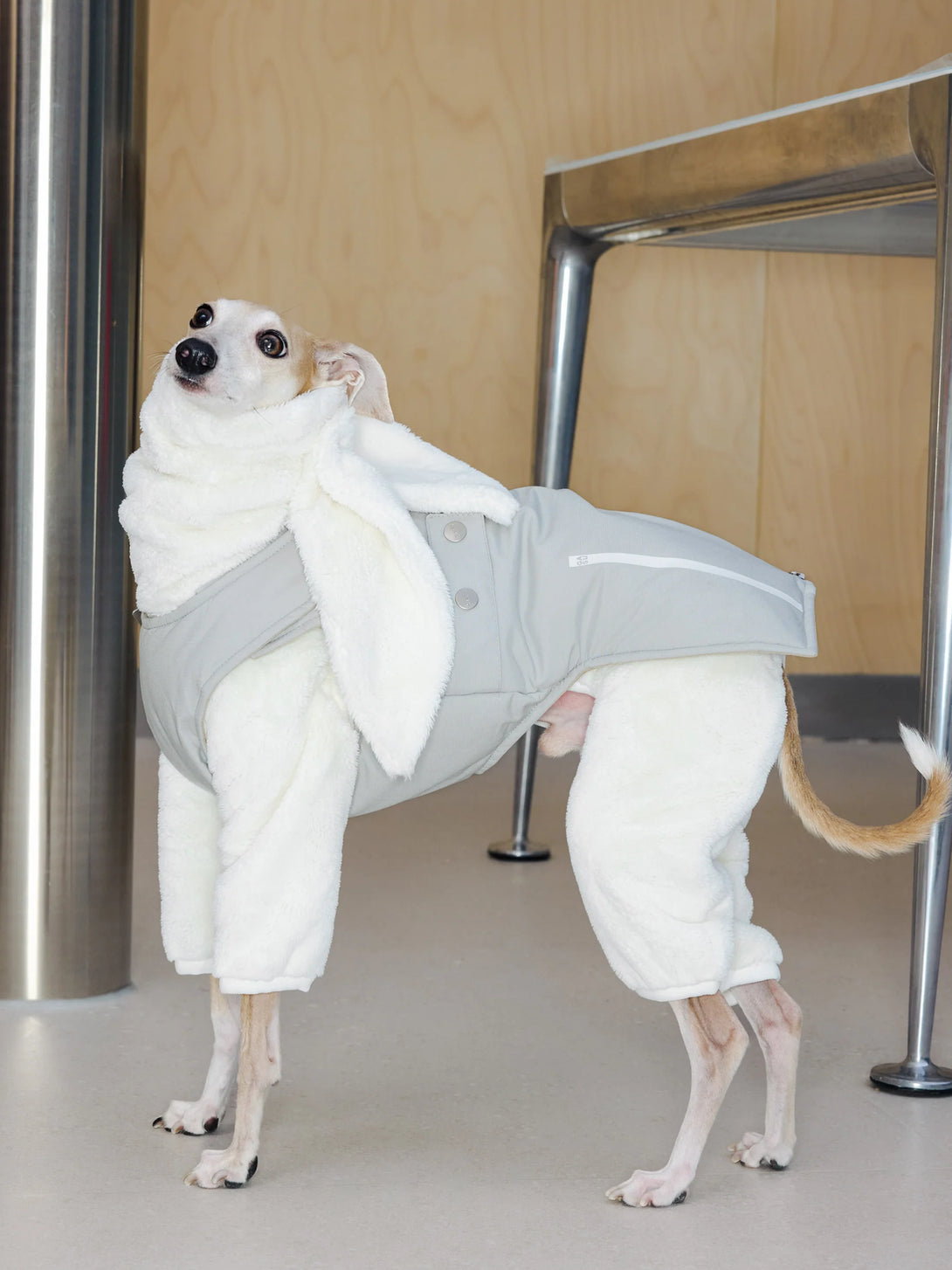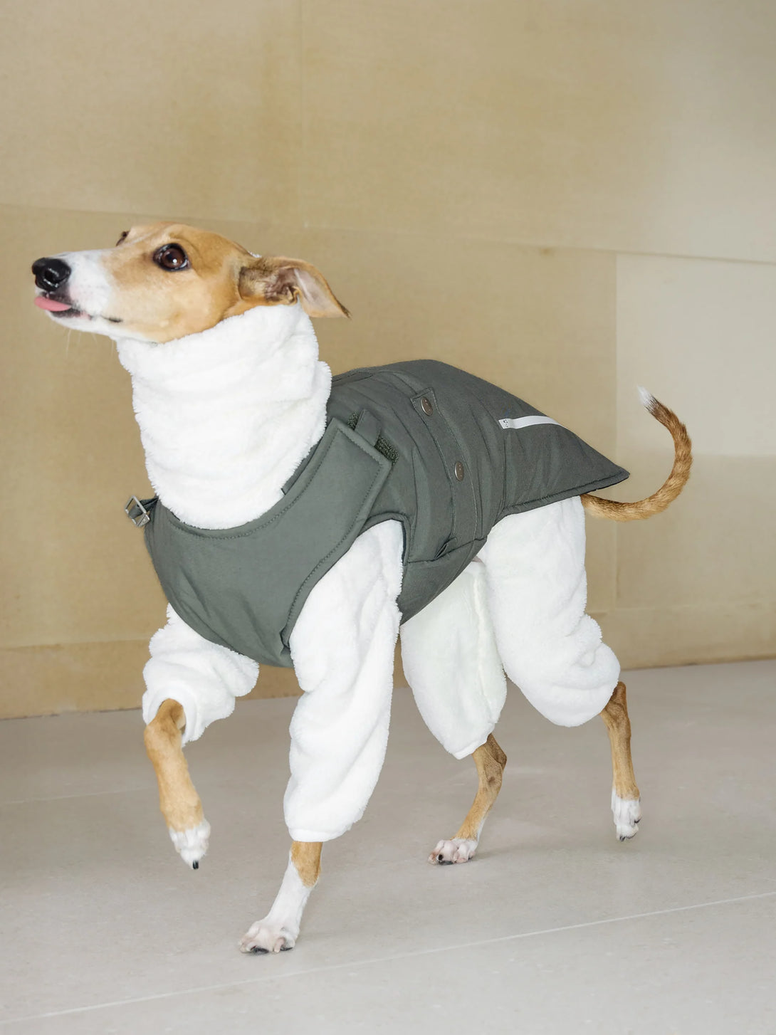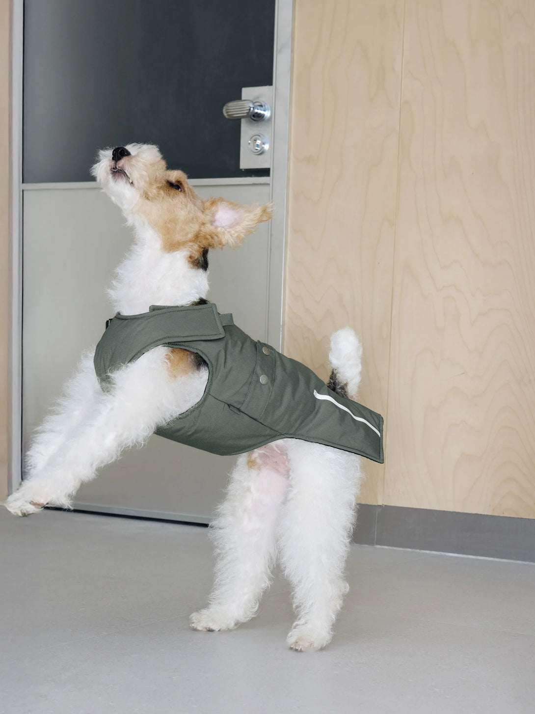 Grey skies, wet pavements, warm pup. This sleek padded vest pairs a breathable, water-repellent outer with plush 3M Thinsulate™ insulation, so dogs stay cosy on cold, damp walks without bulk. The front-facing design slips on fast, the chest and neck adjust cleanly, and a back harness opening keeps leads tidy. Wear solo on drizzly days or layer under a rain shell when the weather turns.