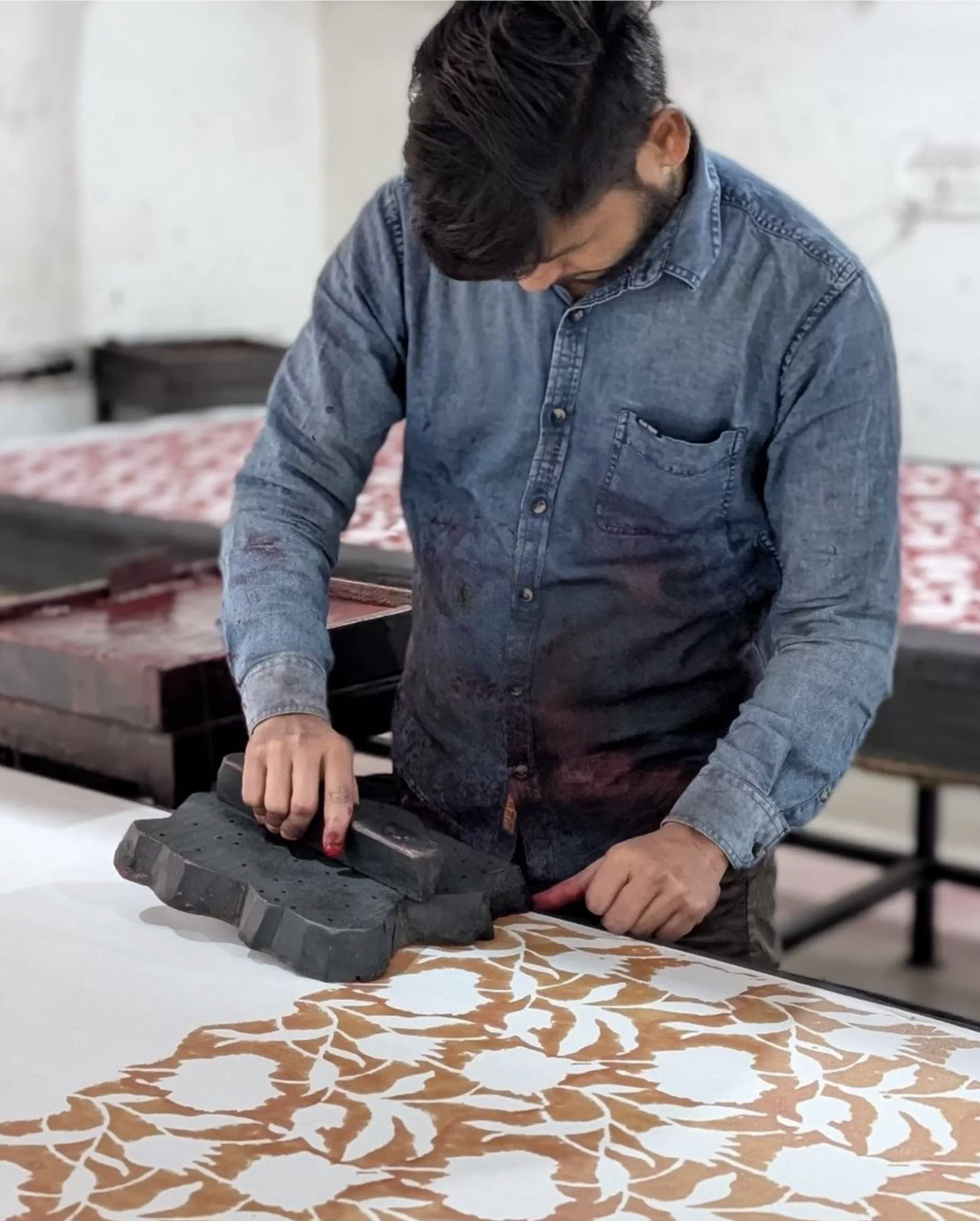 Born in Jaipur, made by hand, here for a blink. Picture a long inked table in Rajasthan: artisans line up carved wooden blocks, tap-tap them into natural plant and mineral dyes, then press out the motif by hand, layer after layer. A swipe of Dabu mud-resist protects the pale bits; sun and air fix the colours. The cloth is 100% cotton - breathable now, softer with every wash - and carries those tiny, wobbly print marks that only a human hand can leave.