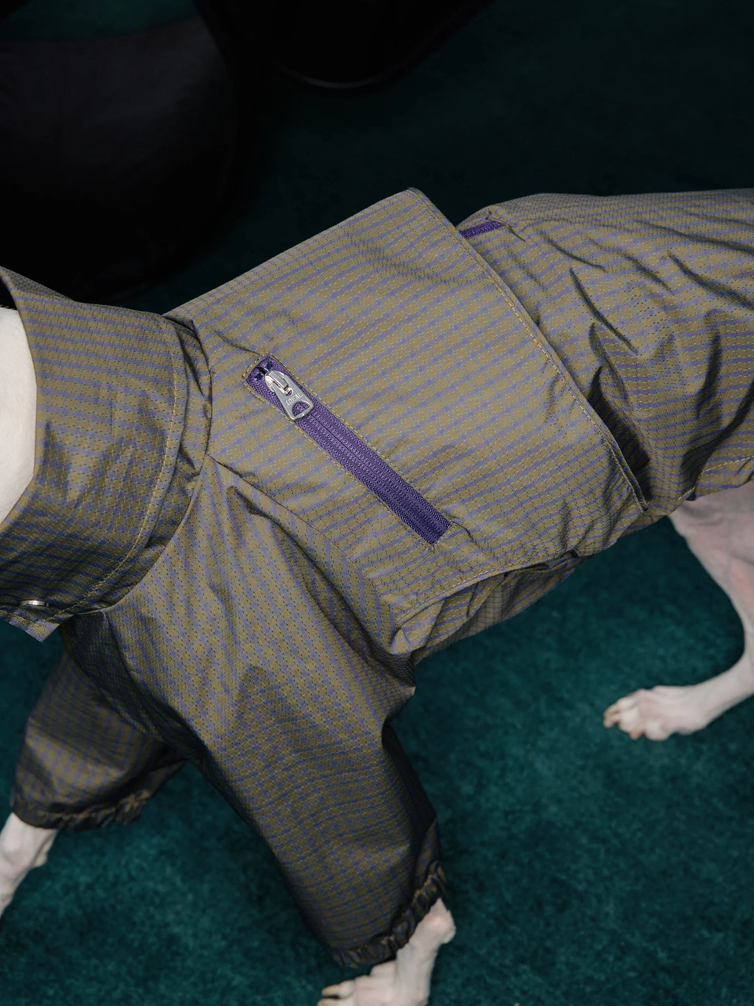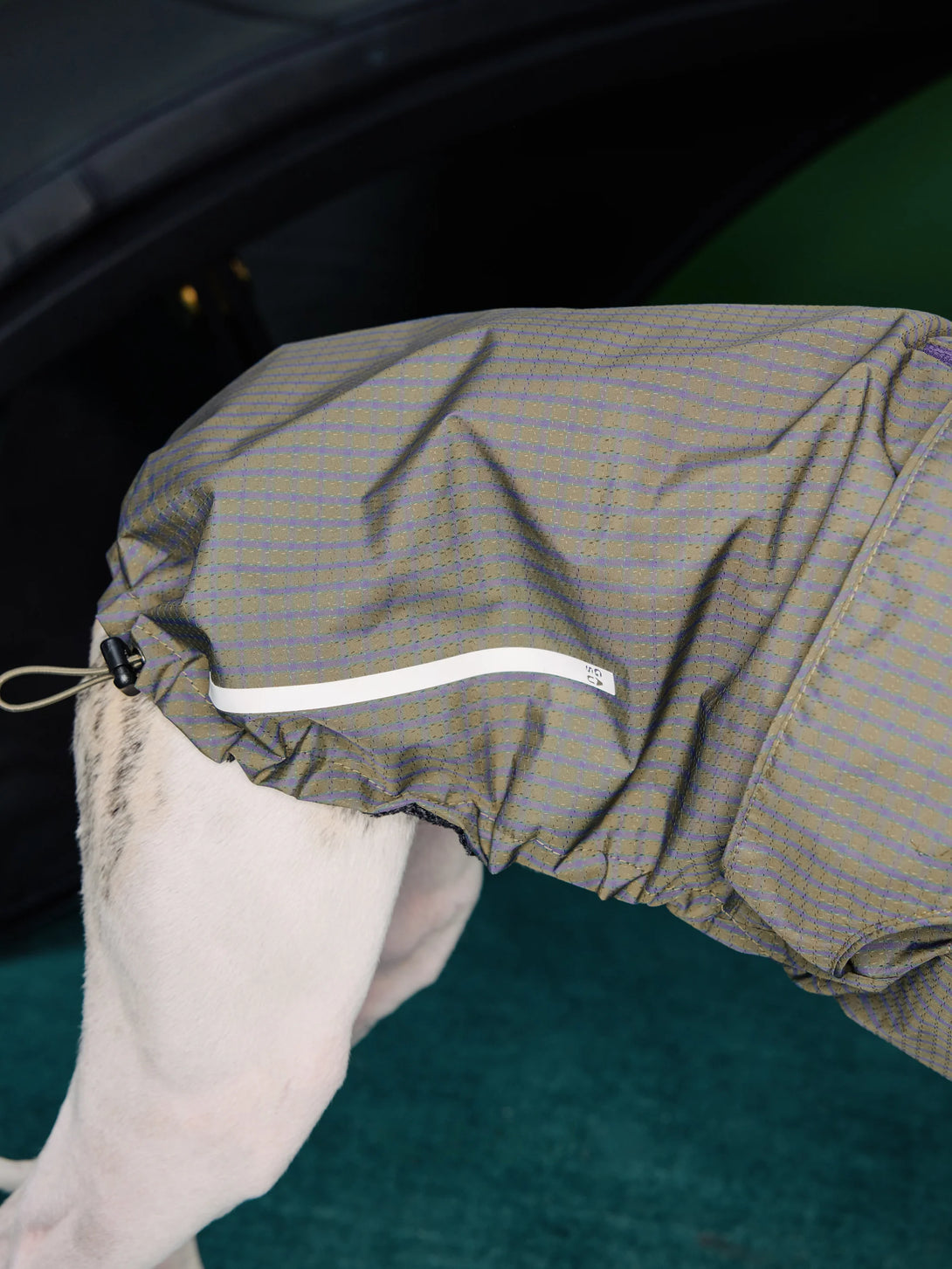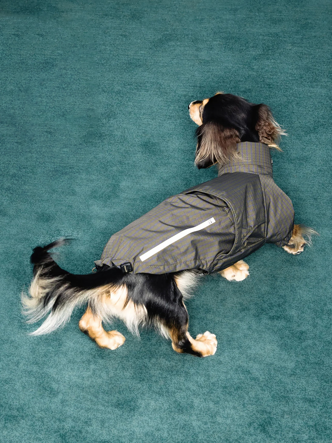 Low belly, long back, puddles everywhere. This dachshund-cut cape extends the back, drops the belly for splashy pavements and keeps short legs free. Waterproof shell, wind calm and tail-up trots from lift to pavement and back again.
